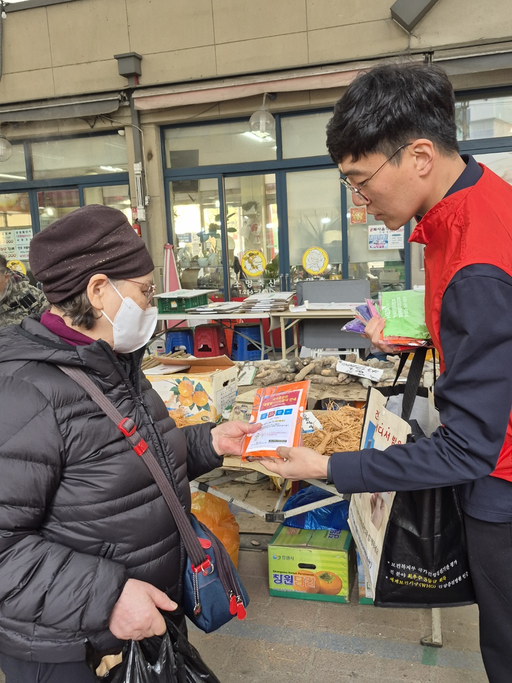 한국건강관리협회 강원특별자치도지부(본부장 고복희)는 2월 27일(금) 춘천풍물시장을 찾아 지역 주민들과 직접 만나 장바구니 나눔 캠페인을 진행했습니다.