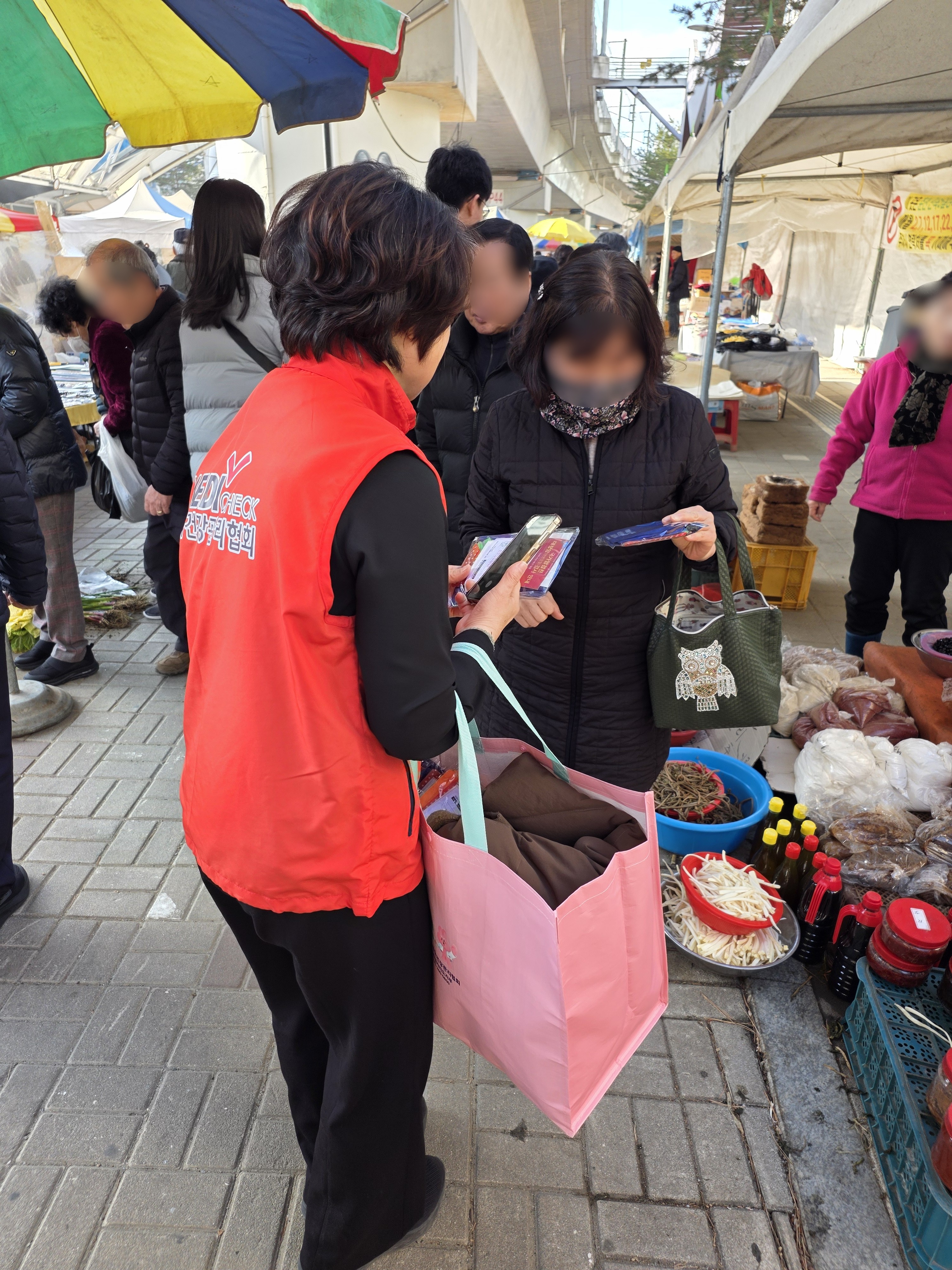 장을 보러 나온 분들께 실용적인 장바구니를 전해드리며 건강검진 정보와 검진 예약 방법도 함께 안내해드렸습니다.
